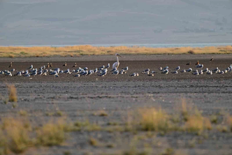 Van Gölü havzasında nadir olarak görülen Ak Pelikan, 40 yıl sonra Erçek Gölü'nde görüntülendi.