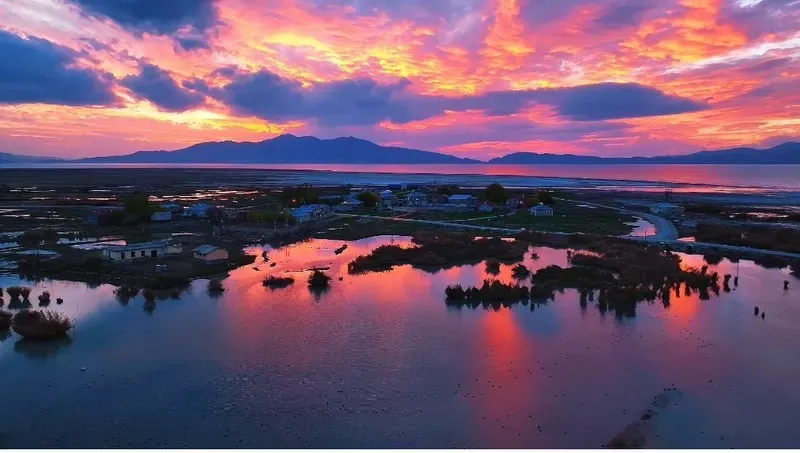 Akşam saatlerinde güneşin ufukta kaybolmaya başlamasıyla birlikte gökyüzü, tabloya dönüştü. Kızıl ve altın sarısı tonların hakim olduğu bu anlarda, ışık oyunları göl yüzeyine yansıyarak eşsiz bir görsel şölen sundu. Görüntüleri kaydeden doğa fotoğrafçısı Dağ, dron ile göl üzerinde alçak ve yüksek irtifada gezdirerek manzarayı farklı açılardan kaydetti. Özellikle su yüzeyindeki yansımaların netliği ve gökyüzündeki bulutların renklerle dansı, dron kadrajına adeta bir sanat eseri gibi yansıdı.
