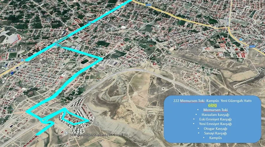 Memur-sen TOKİ ile Üniversite Kampüsü arasında yeni bir otobüs güzergâhı ( 222 Hat Kodu İle ) planlanarak, belirtilen hatta 26.11.2025 tarihinden itibaren hafta içi sabah 07:00 Memur-sen TOKİ'den üniversite güzergâhına 1 otobüs ile hizmet vermeye başlamıştır.
