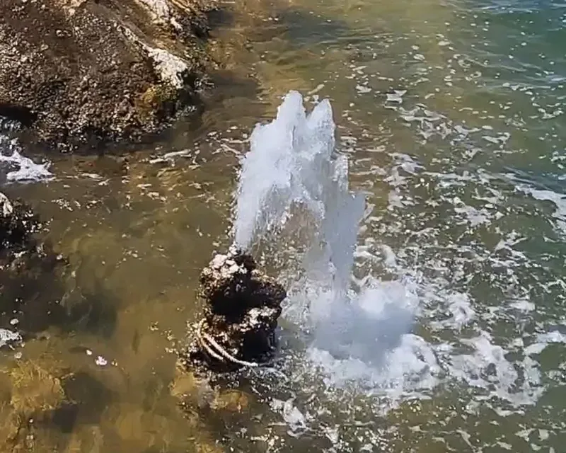 Van Gölü'nün çekilmesiyle Gevaş'ta gün yüzüne çıkan bir mikrobiyalitte fışkırır şekilde görülen su çıkması, görenleri hayrete düşürüyor.