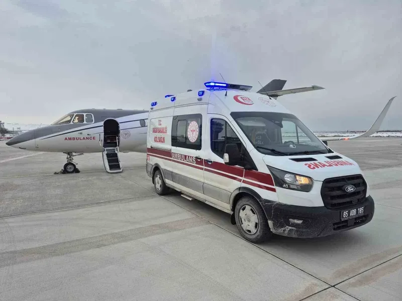 Van Yüzüncü Yıl Üniversitesi Dursun Odabaşı Tıp Merkezi'nde tedavi gören 3 aylık N.K. isimli bebek, ileri tetkik ve tedavi amacıyla Konya Şehir Hastanesi'ne uçak ambulans ile sevk edildi. Patent Duktus Arteriosus (PDA) tanısı bulunan minik hastanın nakli, Sağlık Bakanlığı'na bağlı ekiplerin koordinasyonunda planlandı. Sevk kapsamında görevlendirilen uçak ambulans, saat 16.40'ta Van Ferit Melen Havalimanı'na iniş yaptı. Burada hazır bekleyen sağlık ekipleri tarafından hastaneden alınan bebek, gerekli tıbbi donanım ve uzman ekip eşliğinde uçak ambulans ile Konya'ya nakledildi.