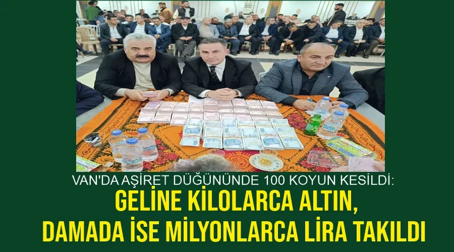 Van'da 100 koyunun kesildiği ve binlerce kişinin katıldığı düğünde, Gevdan Aşireti'ne mensup Erhan ve Bahar Işık çiftine kilolarca altın ve milyonlarca lira takıldı.