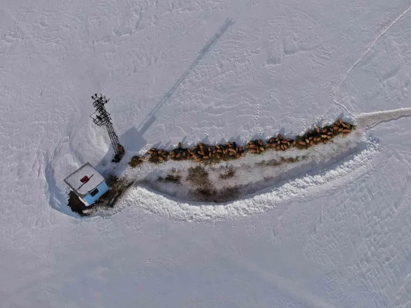 Kentte geceleri eksi 15 dereceye kadar düşen hava sıcaklığı hayatı olumsuz yönde etkiliyor. Çatak ilçesinde besiciler çetin kış şartları ve bölgenin zorlu coğrafyasına rağmen hayvanlarının bakımını ihmal etmiyor. Tek geçim kaynakları hayvanları için dondurucu soğukların etkili olduğu kırsalda tüm zorluklara göğüs geriyor. Yazın yaylalarda otlattıkları hayvanlarına kış boyunca ağıllarda bakan besiciler, gün içerisinde çıkardıkları hayvanlarına kar üzerinde yem veriyor. İlçeye 30 kilometre uzaklıktaki Teknecik Mahallesi'nde günün ilk ışıklarıyla işe koyulan besiciler, sırtlarında ve kızakla taşıdıkları otları, karın üzerine sererek günde 2 kez hayvanlarını besliyor, akşam saatlerinde ise yeniden ağıla götürüyor.