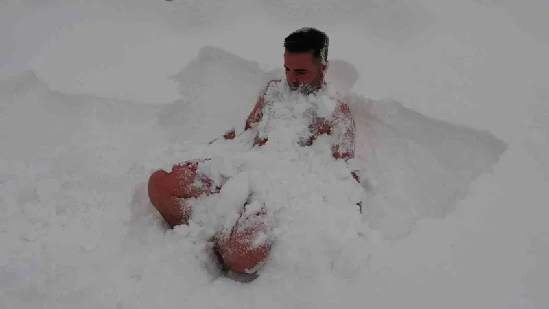 Van genelinde son günlerde etkili olan yoğun kar yağışı hayatı olumsuz etkilerken, bazı vatandaşlar için bu durum bir eğlence ve sağlık ritüeline dönüştü. Kent merkezinde kar kalınlığının 20 santimetreyi aştığı sabah saatlerinde, soğuğa dayanıklılığıyla bilinen bir bölge sakini, üzerindeki kıyafetleri çıkararak kendisini beyaz örtünün kollarına bıraktı. Daha önce Van Gölü'nün soğuk sularında yüzen özel eğitim öğretmeni Muhammed Turken, "Van'da görev yapıyorum. Özel eğitim öğretmeniyim. Önceki yıllarda ve geçen haftalarda Van Gölü'nde yüzdüm. Akan suda yüzdüm. Uzun zamandır bunu yapmak istiyordum. Daha önce yapmamıştım. Rusların, İskandinav ülkelerin bunu yaptığını gördüm ve vücuda sağlığını araştırdım. Çok sağlıklı bir şey olduğunu düşündüğüm için bunu yaptım. Bu ilkti ama kesinlikle son olmayacak. Vücudum şu an muazzam derecede kendini dinç hissediyor. Yapmak isteyen varsa da ileriki zamanlarda birlikte yapabiliriz. Herkesi bu etkinliklere bekliyorum" dedi.