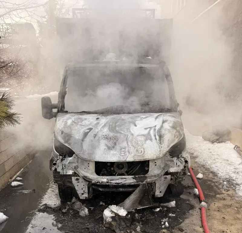 Van'ın Tuşba ilçesinde park halindeki kamyonetin motor kısmında çıkan yangın itfaiye ekiplerin müdahalesi ile söndürüldü.