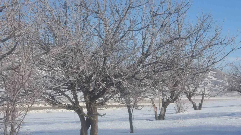 Van'da dondurucu soğuklar, tabiatı adeta beyaz bir örtüyle süslerken, gece hava sıcaklığının gece sıfırın altında düşmesiyle ağaçlar kırağı tuttu.