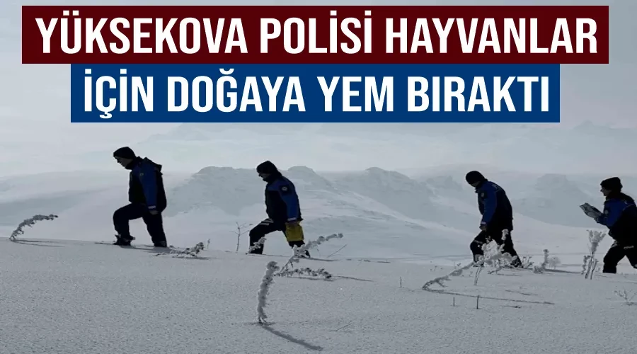 Hakkari'nin Yüksekova İlçe Emniyet Müdürlüğünde görevli polisler, kar yağışından dolayı yiyecek bulmakta zorlanan hayvanlar için yarım metreyi bulan karda yürüyerek yemleme çalışması yaptı.