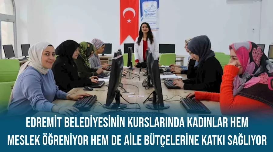 Edremit Belediyesi Kadın ve Aile Hizmetleri Müdürlüğü tarafından açılan kurslar ile kadınlar bir yandan sosyalleşirken, bir yandan da edindiği meslek ile aile ekonomisine katkı sağlıyor. Üç farklı birimde 23 eğitmenin eğitim verdiği merkezde, yaklaşık 400 kursiyer eğitim görüyor. Dikiş nakıştan okuma yazma kurslarına, deri çanta yapımından çiniciliğe, ahşap boyamadan tasarıma kadar birçok alanda kadınların meslek sahibi olduğunu belirten Edremit Belediyesi Kadın ve Aile Hizmetleri Müdürü Habban Demirbacak, kursların sabah ve öğle olmak üzere iki grup şeklinde düzenlendiğini ifade etti. Kadınların kurslara olan ilgisinin memnuniyet verici olduğunu belirten Demirbacak, “Buraya gelen kadınlar ilk bakışta hobi amaçlı ve aile bütçelerine katkı sunmak için gelseler bile aslında kafa dağıtmak için geliyorlar. Evdeki ortamdan biraz olsun uzaklaşmak için gelen kadınlarımız var. Kadınlarımız burada yaptığı ürünleri satarak aile bütçelerine maddi imkan sağlıyorlar. Bizim ayrıca sosyal ve kültürel gezilerimiz de oluyor. Burası hem sosyalleşmek hem de kültürel açıdan kadınlarımız için çok iyi” dedi.