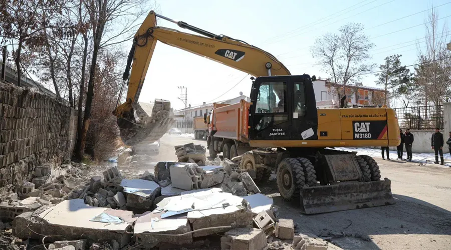 Van Büyükşehir Belediyesi, alternatif yol çalışmaları kapsamında Süphan Mahallesi'nde kaçak yapıları yıktı. Yıkım sonrası altyapı ve asfalt çalışmaları başlayacak.