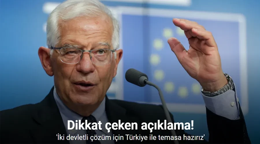 Avrupa Birliği (AB) Dış İlişkiler ve Güvenlik Politikası Yüksek Temsilcisi Josep Borrell, Türkiye'nin çatışmaların çözümünde önemli roller üstlendiğine dikkat çekerek İsrail-Filistin meselesinde 'iki devletli çözüm' için Türkiye ile temasa geçmeye hazır olduklarını söyledi.