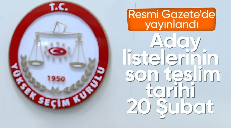 Resmi Gazete'de yayınlanan YSK Kararı'na göre; büyükşehirlerde; siyasi parti il başkanlıkları, büyükşehir belediye başkanlıkları listelerini il seçim kurullarına, siyasi parti ilçe başkanlıkları; belediye başkanlığı ve belediye meclis üyeliği ve il genel meclisi üyeliklerine ilişkin aday listelerini, ilçe seçim kurullarına alındı belgesi karşılığında taşınabilir bellekte ve üç nüsha halinde kağıt ortamında o seçim çevresinde yapılan bütün seçimleri için ayrı ayrı olmak üzere en geç 20 Şubat Salı günü 17.00'ye kadar teslim etmesi gerekecek.