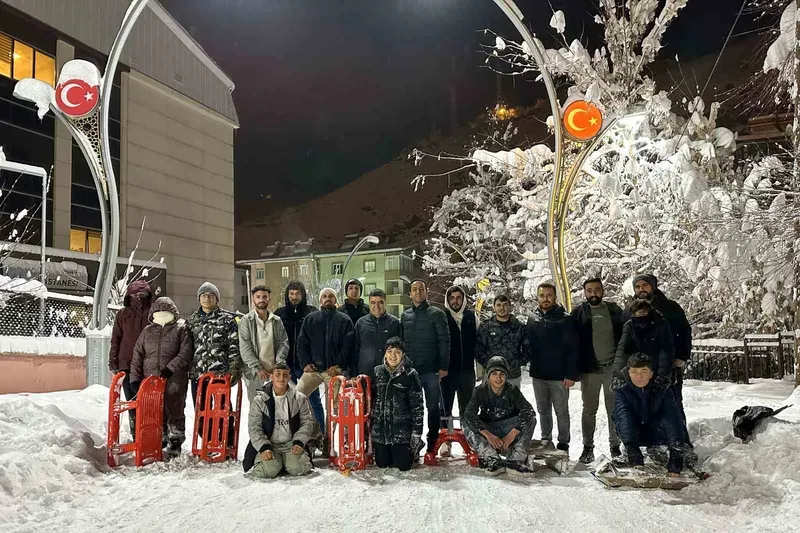 Van'ın Çatak ilçesinde etkili olan yoğun kar yağışı nedeniyle okulların il genelinde tatil edilmesini fırsata çeviren öğrenciler, kızaklarıyla gece geç saatlere kadar kayarak karın keyfini çıkardı.