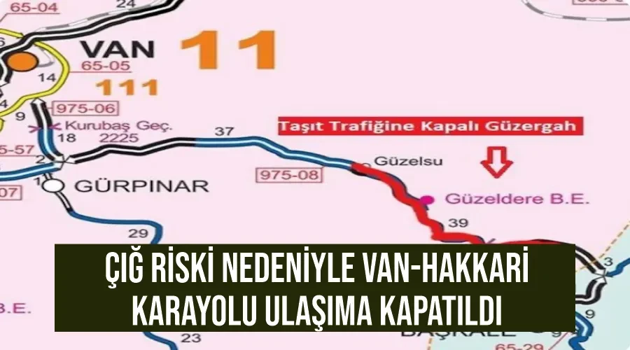 Karayolları 11. Bölge Müdürlüğü, çığ riski nedeniyle Van-Hakkari karayolunu 18.00-07.00 saatleri arasında ulaşıma kapattı.