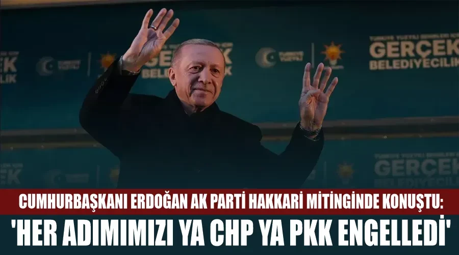 Coşkulu kalabalığa, "Çok şükür kavuştuk Hakkari" diyerek seslenen Erdoğan, ""Her adımımızı ya CHP ya PKK engelledi. Hakkari'nin kaynaklarını teröre değil hizmete aktaracak adaylar belirledik" dedi.