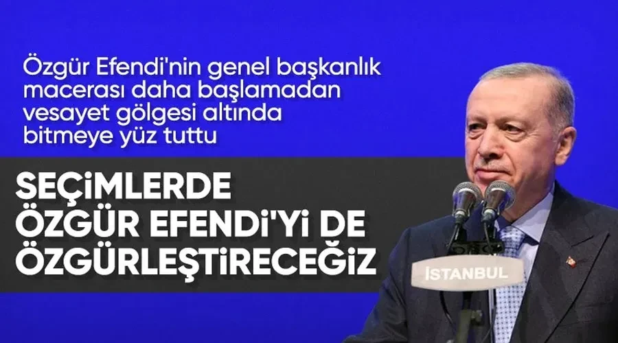 Cumhurbaşkanı Erdoğan göndermesinde "31 Mart seçimlerinde Özgür efendiyi de özgürleştireceğiz" ifadelerini kullandı.