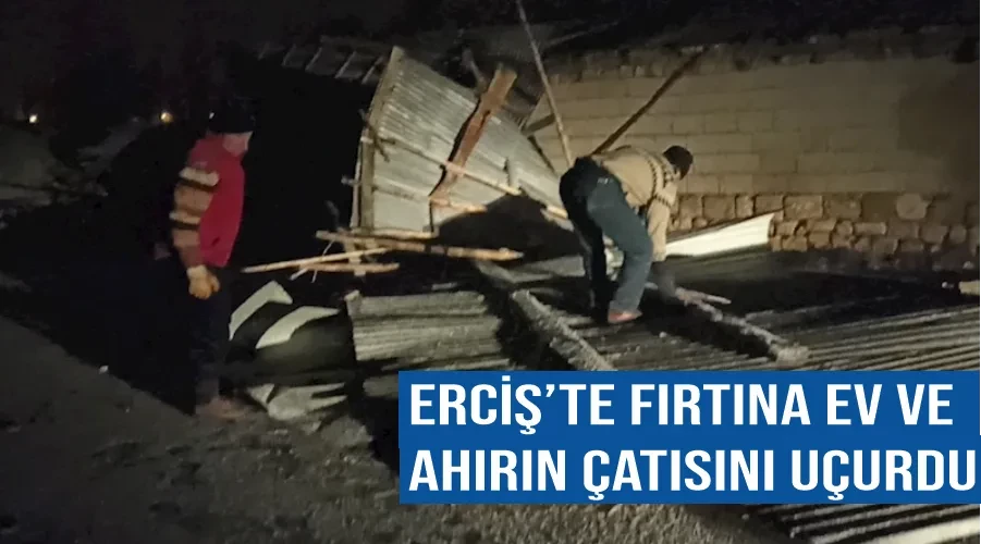 Erciş'in Çelebibağı Mahallesi'nde akşam saatlerinde çıkan fırtına nedeniyle bir evin ve ahırın çatısı uçarak yola savruldu. Yolu tamamen kapatan çatılar vatandaşlar tarafından kaldırılırken, olayda can kaybı ve yaralanma yaşanmadı.