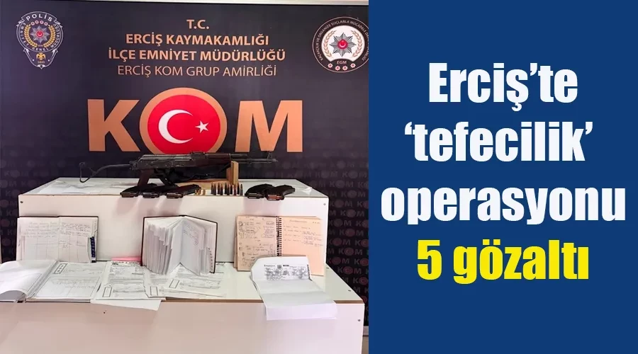 Van'ın Erciş ilçesinde 'tefecilik' suçuna yönelik düzenlenen eş zamanlı operasyonda 5 kişi gözaltına alındı.