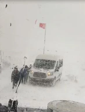 Ardahan'da kar yağışı ve tipi nedeniyle mahsur kalan öğrenci servisi kurtarıldı.