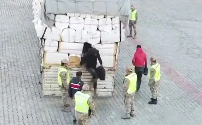 Van'ın Muradiye ilçesinde jandarma ekiplerince durdurulan saman balyası yüklü tırın dorsesindeki zulada 36 düzensiz göçmen yakalandı.