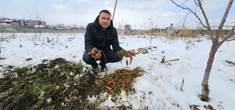 Bitlis'in Tatvan ilçesinde, karlar altında kalan havuçların hasadı yapıldı.