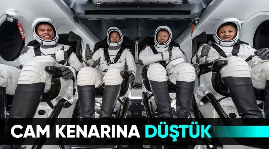 Astronotumuz Alper Gezeravcı'nın cam kenarında görüldüğü fotoğrafta, görevde bulunan diğer üç astronot da görüntülendi.