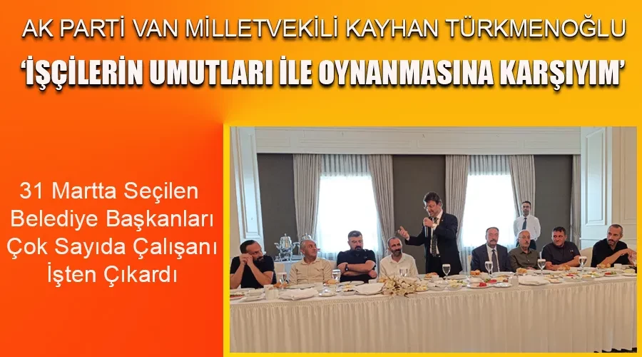Van'da DEM'li belediyeler tarafından işten çıkarılan işçilerin ekmeği ve emeğiyle oynanmasını doğru bulmadığını söyleyen AK Parti Van Milletvekili Kayhan Türkmenoğlu, "insanların umudu, geleceği ve hayali ile oynamak doğru değildir" dedi