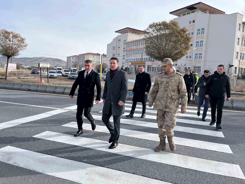 Van'ın Tuşba Kaymakamı Musa Göktaş beraberindeki heyet ile birlikte, 1 kız öğrencinin trafik kazasında yaralandığı bölgede incelemede bulundu.