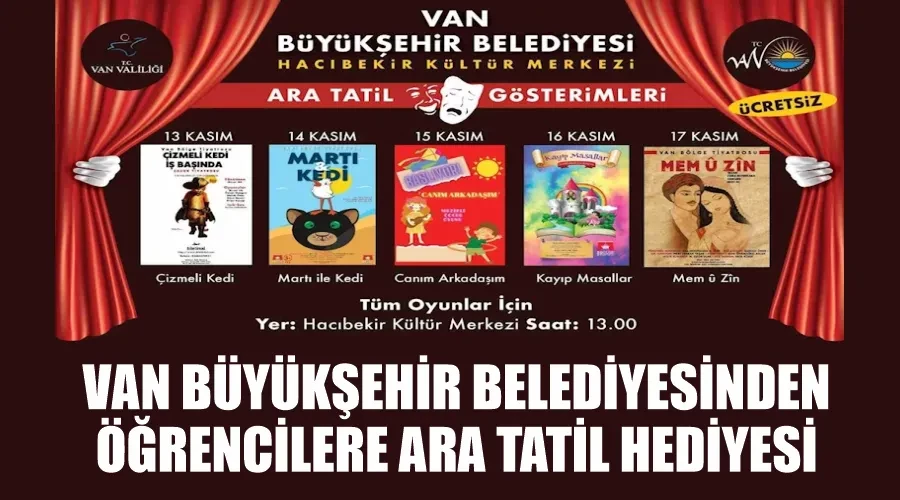 Van Büyükşehir Belediyesi, kültür ve sanat etkinlikleri çerçevesinde öğrenciler için ücretsiz tiyatro etkinlikleri düzenleyecek.