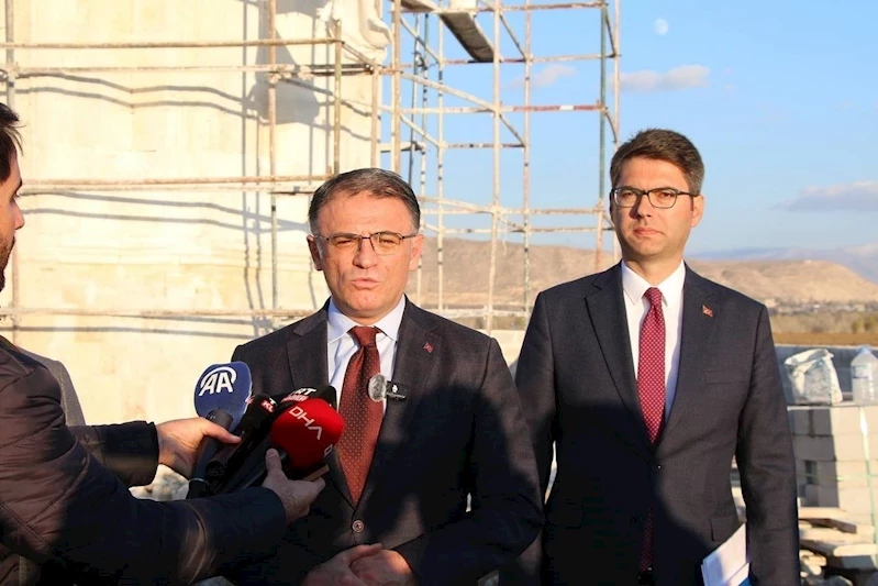 Kümbetin restorasyonunu inceleyen Van Valisi Ozan Balcı'ya Erciş Kaymakamı Murat Karaloğlu da eşlik etti.