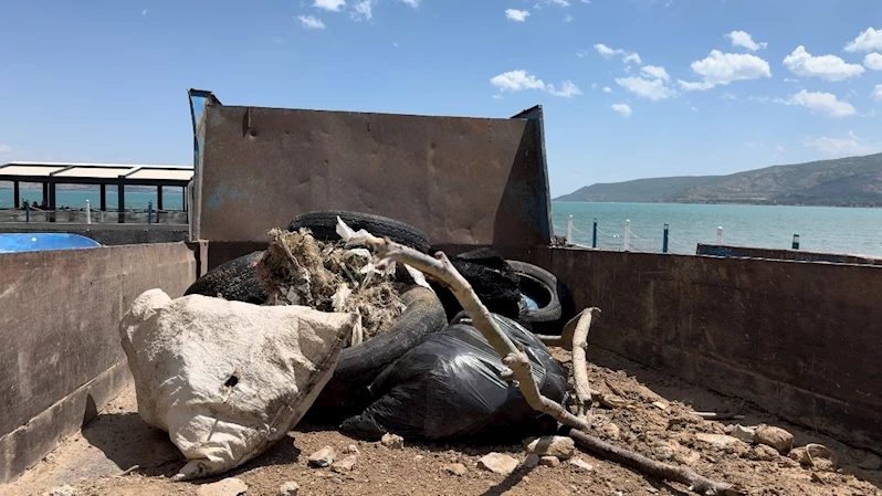 Türkiye'nin en büyük gölü olan Van Gölü'nün Bitlis'in Tatvan ilçe sahilinde yaklaşık 3 aydır devam eden temizlik çalışması kapsamında gölden yaklaşık 20 ton çöp çıkarıldı.