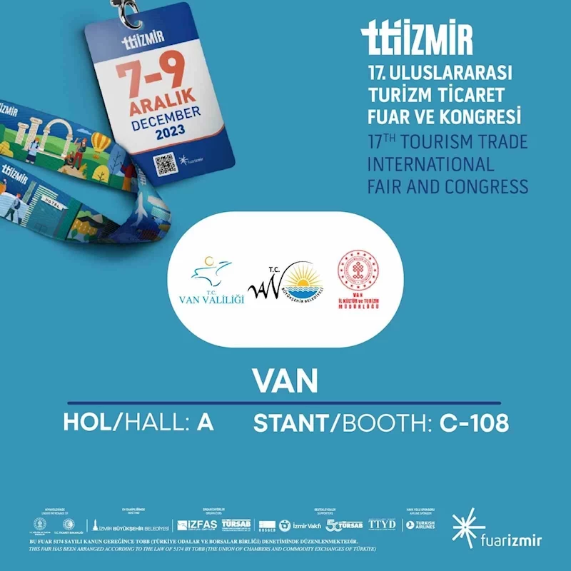 Turizm alanında en prestijli fuarlardan biri olan Travel Turkey İzmir Turizm Fuarı'nda Van Valiliği, Büyükşehir Belediyesi ve İl Kültür ve Turizm Müdürlüğü de yer alacak. Yerli ve yabancı turizm firmalarının görücüye çıkacağı uluslararası turizm fuarında Van'ın doğal güzellikleri, tarihi ve turistik yerleri tanıtılacak.
