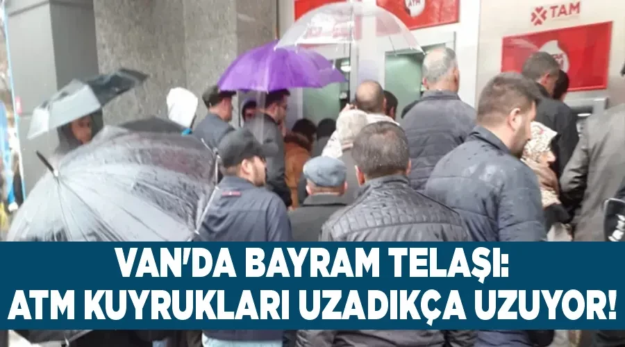 Van'da, bayrama saatler kala alışverişini tamamlamaya çalışan vatandaşlar, ATM'lerde paralarını çekerken uzun kuyruklarla karşı karşıya kaliyor. Özellikle öğlen saatlerinde ATM önlerindeki bekleyiş daha da uzun sürmekte. Para çekme sırasında yaşanan olası sorunlarda, bankamatiklerin hızlı ve yeterli servis alamamaları halk arasında sıkıntıya yol açıyor. Vatandaşlar banka yetkililerinden ATM'lere daha fazla özen göstermelerini ve hızlı müdahalede bulunarak, sorunlu ATM'leri çabucak tamir etmelerini talep ediyor.