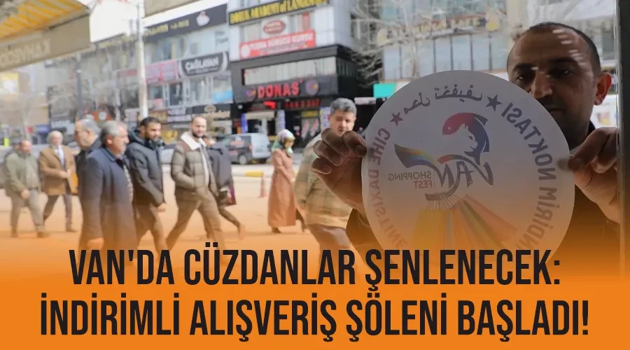 Van'da alışveriş şöleni başlıyor. Van'da, önceki yılların başarısı üstüne, Van Shopping Fest adı altında düzenlenen alışveriş festivali, büyük bir coşkuyla başladı. Van Ticaret ve Sanayi Odası tarafından organize edilen festivalde, katılımcı işletmelere indirim noktası stickerları asılarak indirimlerin startı verildi.