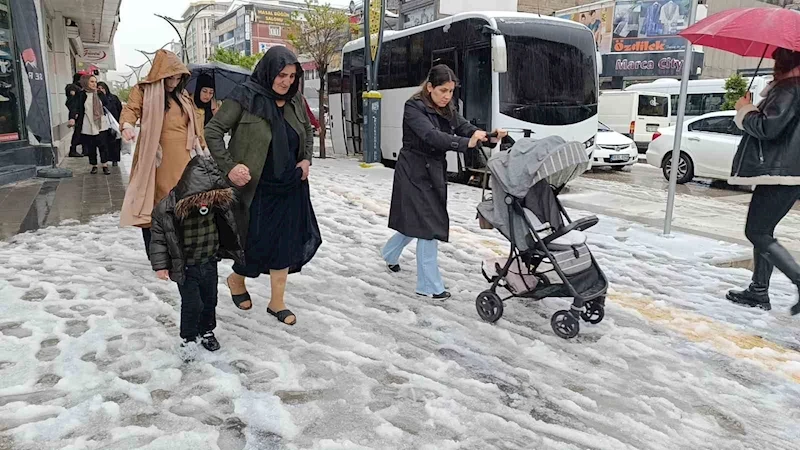 Kentte aniden bastıran dolu yağışı hayatı olumsuz etkilerken, ortaya çıkan görüntü ise kışı aratmadı. Meteoroloji Müdürlüğünün yaptığı uyarıların ardından öğle saatlerinde aniden dolu etkili oldu. Kısa sürede şehir merkezini beyaza bürüyen dolu, hayatı da olumsuz etkiledi.