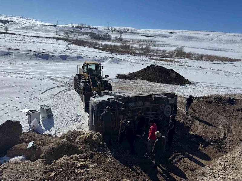 Van'ın Başkale ilçesinde kontrolden çıkan kamyon şarampole yuvarlanırken, sürücüsü yara almadan kurtuldu.