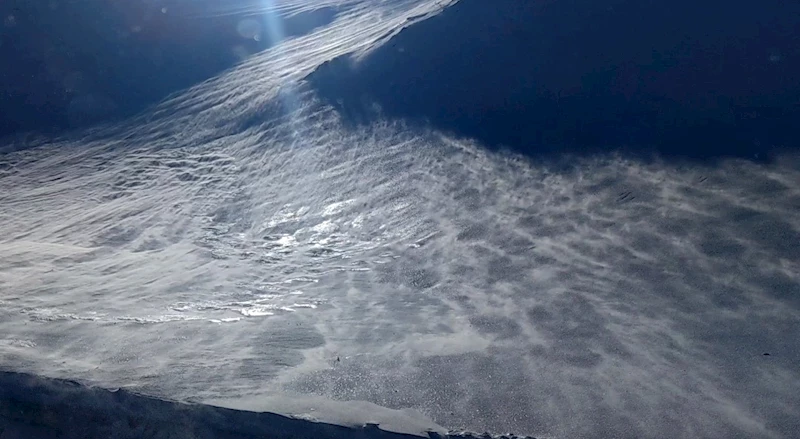 Van-Bahçesaray karayolunda oluşan kar fırtınası görüntüsü adeta bir şelaleyi andırıyor.