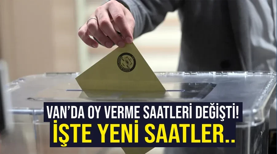Van'da oy verme saatleri değişti YSK'nın 31 Mart 2024 Mahalli İdareler Genel Seçimleri için aldığı kararlar Resmi Gazete'de yayınlanarak yürürlüğe girdi. Alınan kara gereği 31 Mart'ta yapılacak olan yerel seçimlerde Van'ın içinde bulunduğu 32 ilde oy verme saatleri 07.00-16.00 olarak değiştirildi.