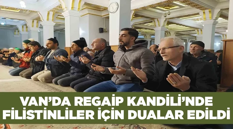 Rahmet, mağfiret ve bereket iklimi üç ayların müjdecisi olarak kabul edilen Regaip Kandili münasebetiyle Van İl Müftülüğü tarafından Ulu Camii'nde bir program düzenlendi. Program kapsamında camilere akın eden Vanlılar, geceyi namaz ve dualarla idrak etti. Camide Kur'an-ı Kerim tilavetinin ardından ilahi ve kasideler okundu. Cemaat, daha sonra Gazze'ye yönelik saldırıların durması ve bölgede yeniden huzurun tahsis edilmesi için dua etti.
