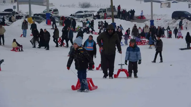 Van'da yarıyıl tatilinin son günlerini fırsat bilen çocuklar ve aileleri, kayak merkezlerine akın ederek doyasıya eğlendi.