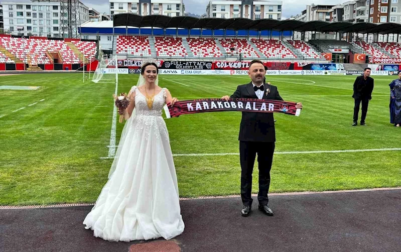 Vanlı kadın hakem nikah töreni öncesi Atatürk Şehir Stadı'na gelerek önce hatıra fotoğrafı çekti, daha sonra maçta kullandığı düdüğü çaldı.