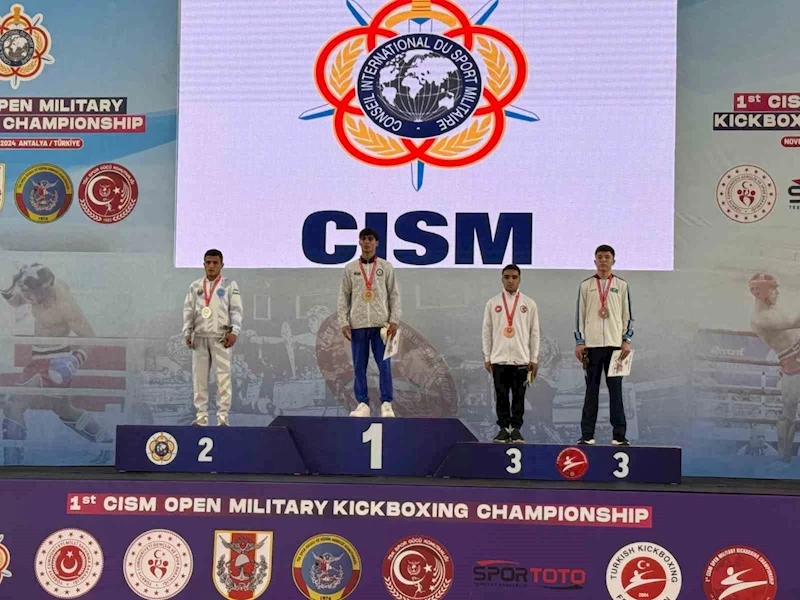 Vanlı sporcu Bedirhan Ersayar, Antalya'da düzenlenen 1. CISM Açık Askeri Kick Boks Şampiyonası'nda büyük bir başarıya imza atarak dünya üçüncüsü oldu.