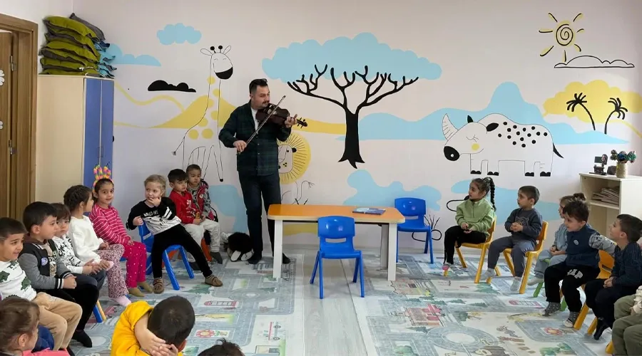 Van Büyükşehir Belediyesi Konservatuvarı, "Masalcı Abi Çocuklarla Buluşuyor" projesi ile anaokulu öğrencilerini masal ve müzikle tanıştırıyor.